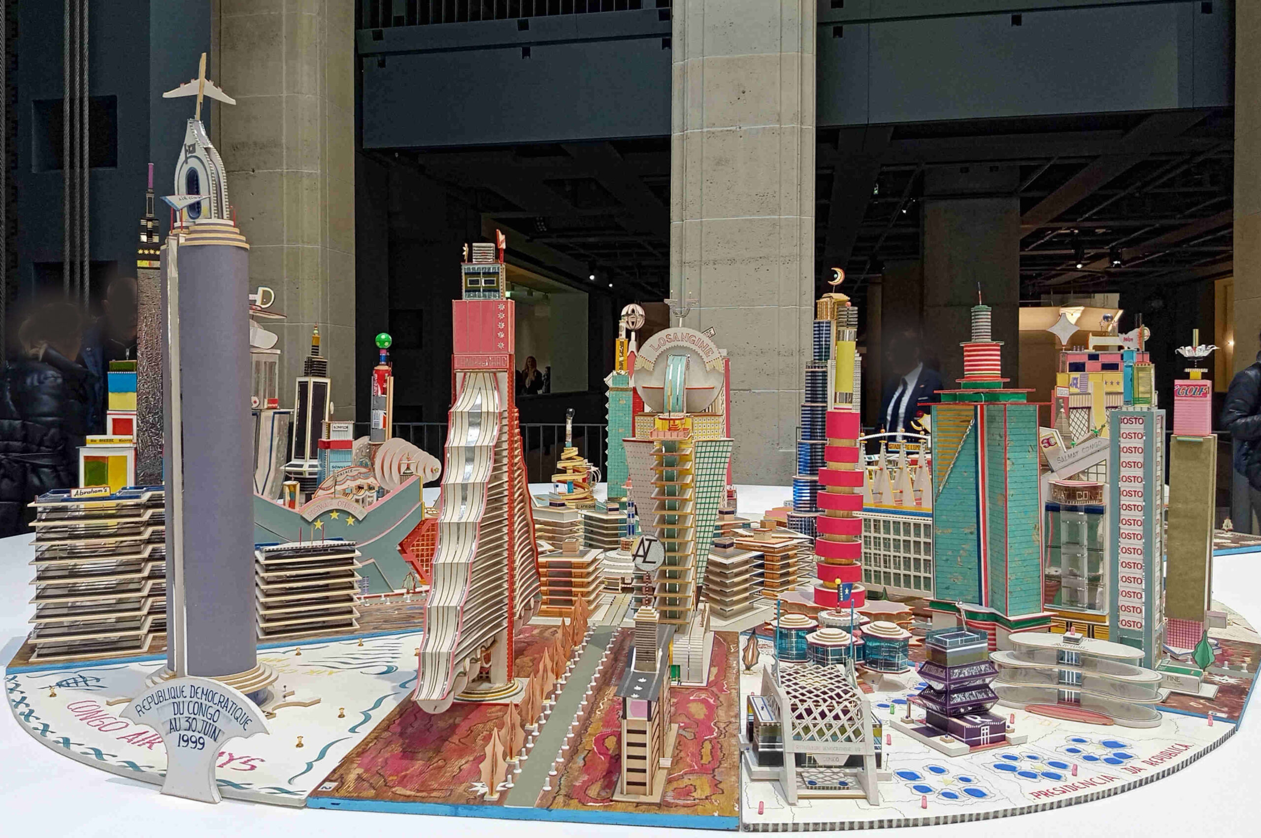 Par exemple, dans sa maquette de Kinshasa, Projet pour le Kinshasa du troisième millénaire réalisée en 1997, Bodys Isek Kingelez insère dans la ville les équipements d’une cité moderne, stade, école, gare…, qu’un habitant serait peut être en droit d’attendre.