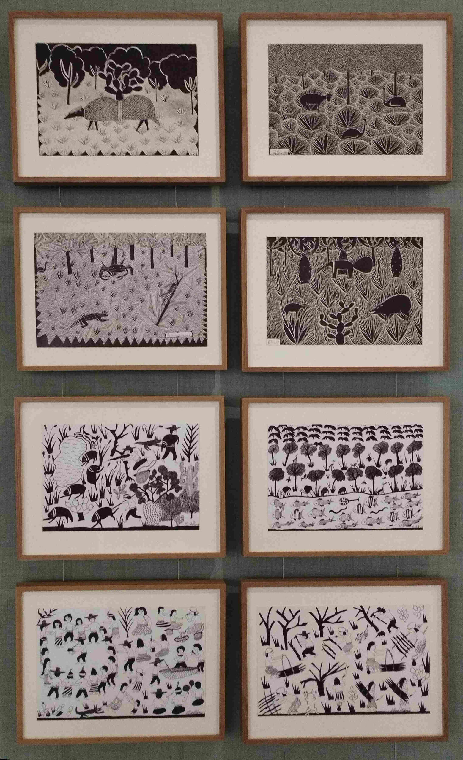 Au travers de 64 dessins réalisés au stylobille, les Artistes du Gran Chaco présentent l’immense variété des espèces animales et végétales de leur habitat forestier, menacées par les ravages de l’exploitation humaine.