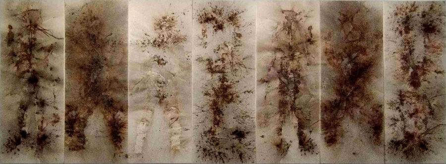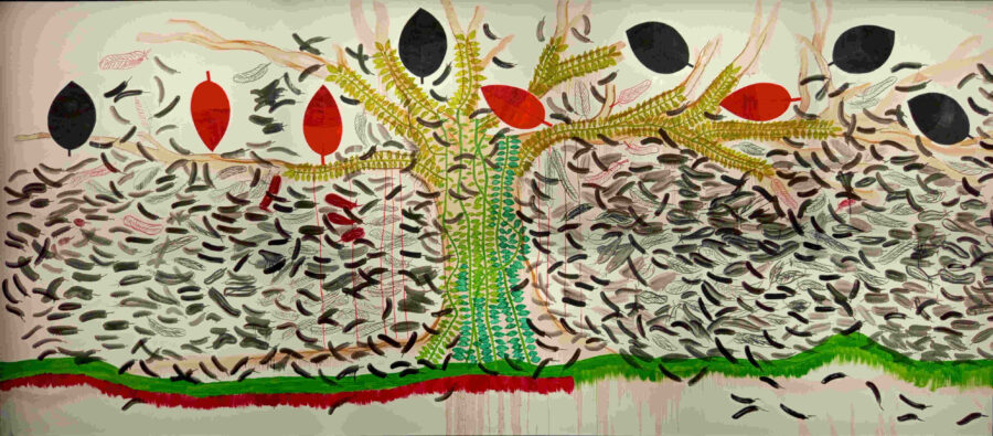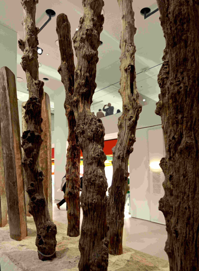 Constituée de matière organique érigée comme des totems, l’œuvre de Hains, monumentale, forte et belle, interroge la possibilité d’une coexistence entre l’homme et la nature.