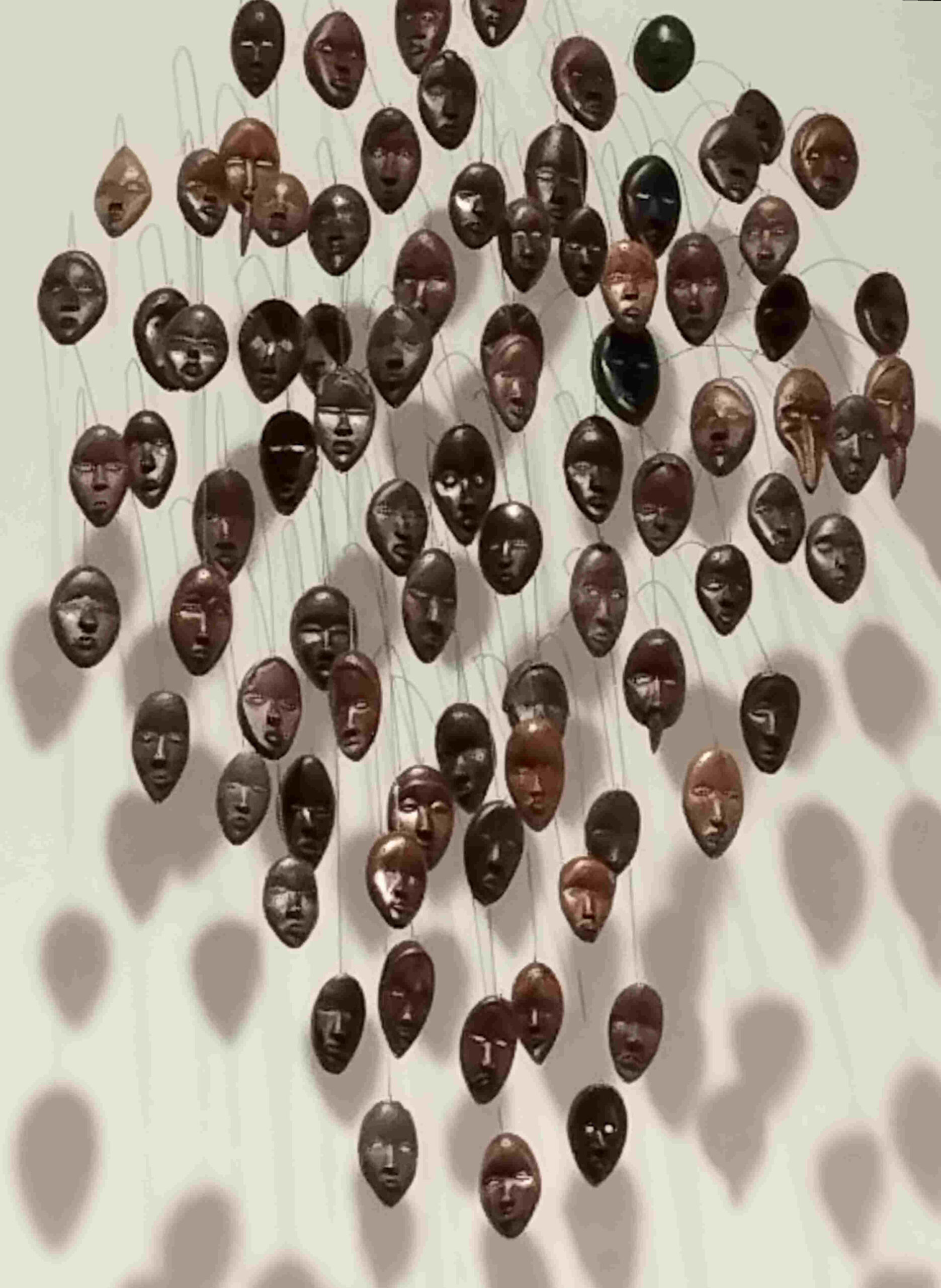 Cette œuvre de Hammons utilise le thème de la démultiplication du masque africain, symboles des identités et des croyances pour susciter la réflexion et remettre en question préjugés et préconceptions.