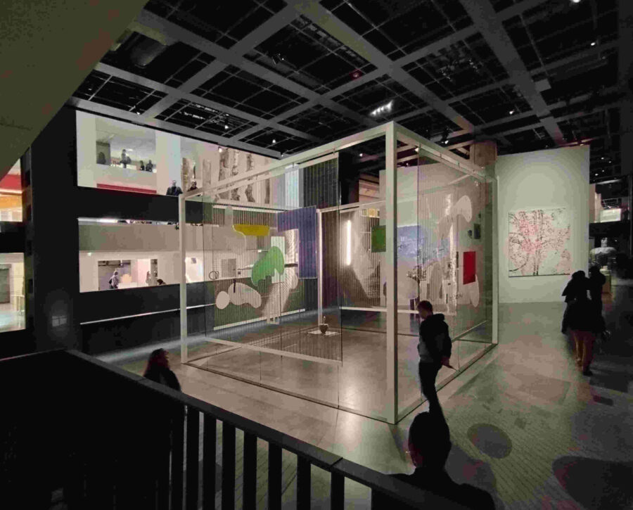 Les œuvres visibles de l’extérieur jouent un rôle de produit d’appel. Cette nouvelle cathédrale de l’art s’étend sur des milliers de mètres carrés et comporte « cinq plateformes de 200 à 340 m² chacune, réglables à différentes hauteurs ». Cette configuration constitue tout à la fois un défi et un atout pour la programmation scénographique des expositions et notamment de l’Exposition générale.
