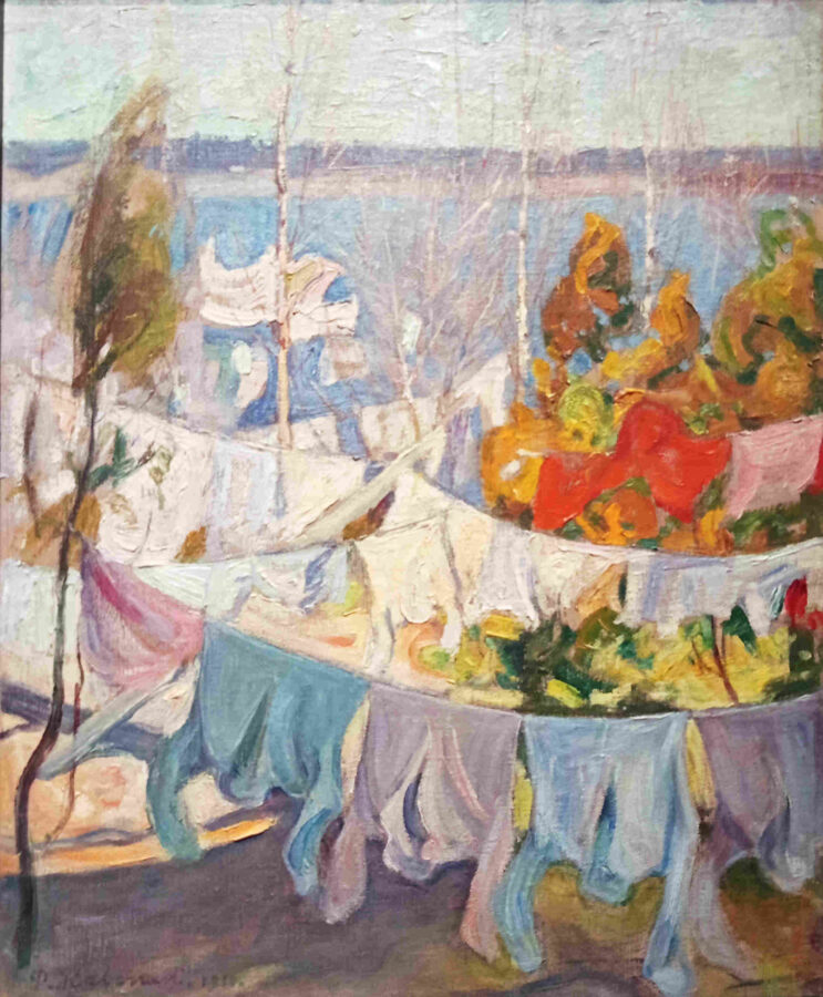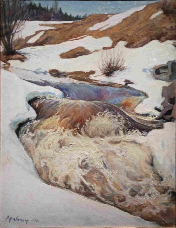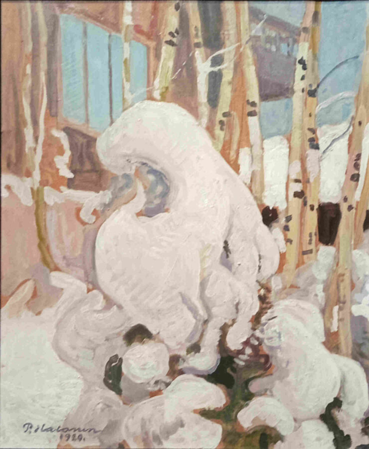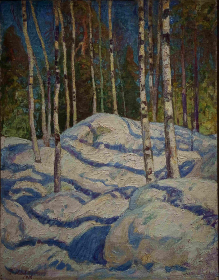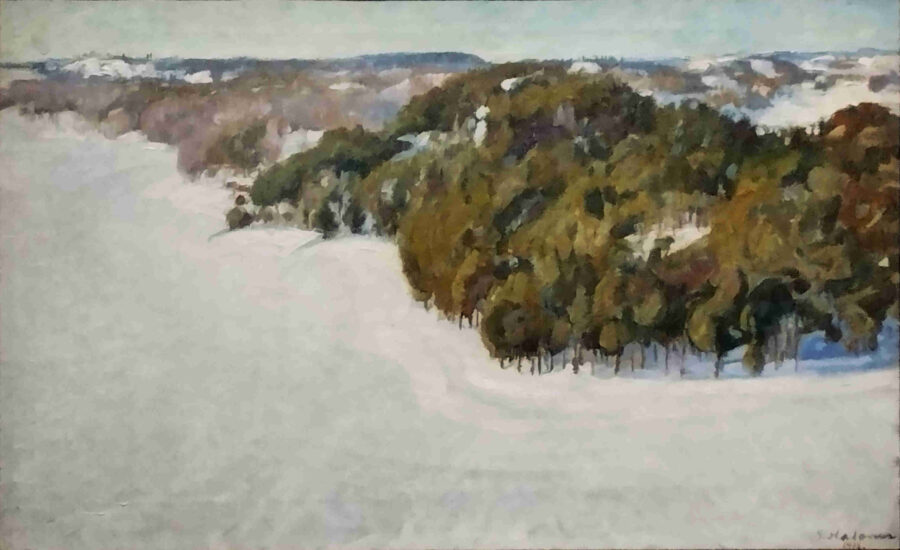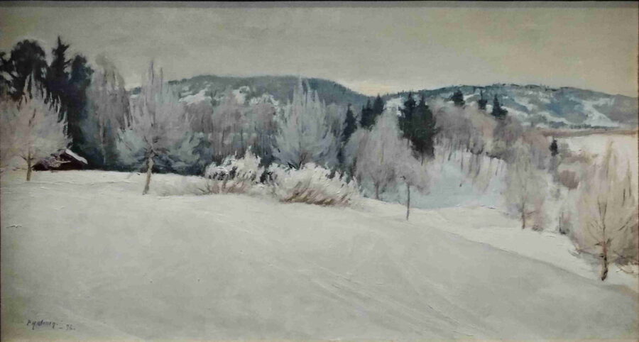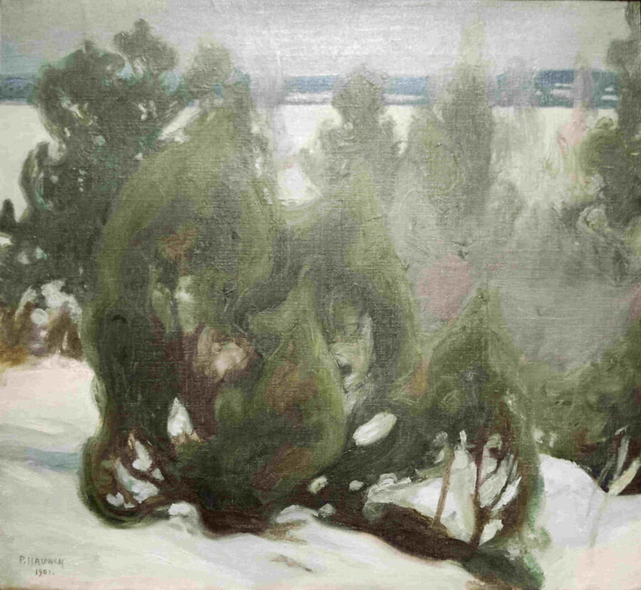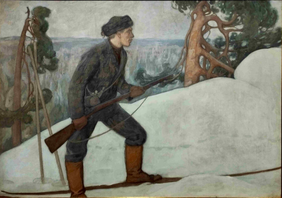 Tout au long de l’année mais surtout en hiver, le paysage en constitue un thème essentiel, dans lequel les arbres tout autant que les humains se dressent fièrement au mépris des intempéries et des menaces du grand voisin russe.