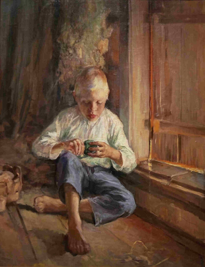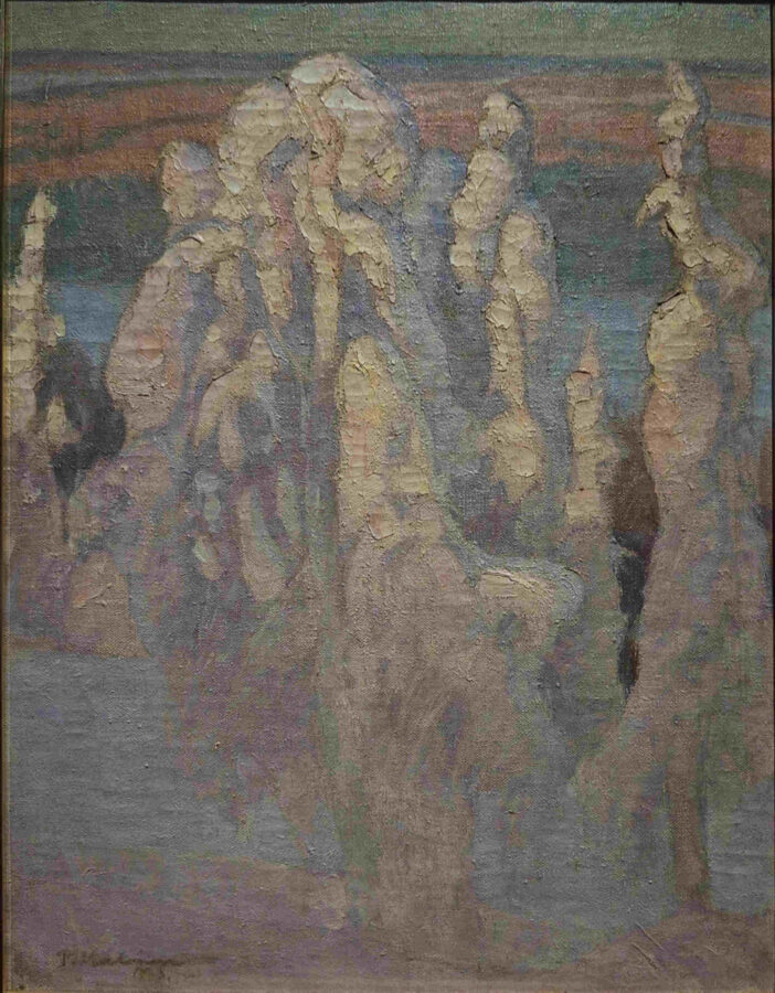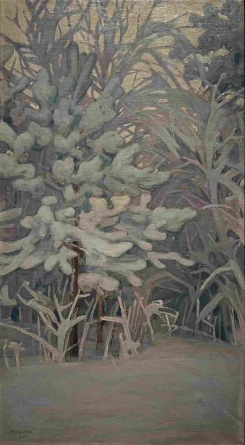 Cependant, l’enseignement le plus profond de Gauguin dépasse largement la seule sphère technique. Sous son influence, Halonen exalte la vie rustique et nourrit sa réflexion théosophique.