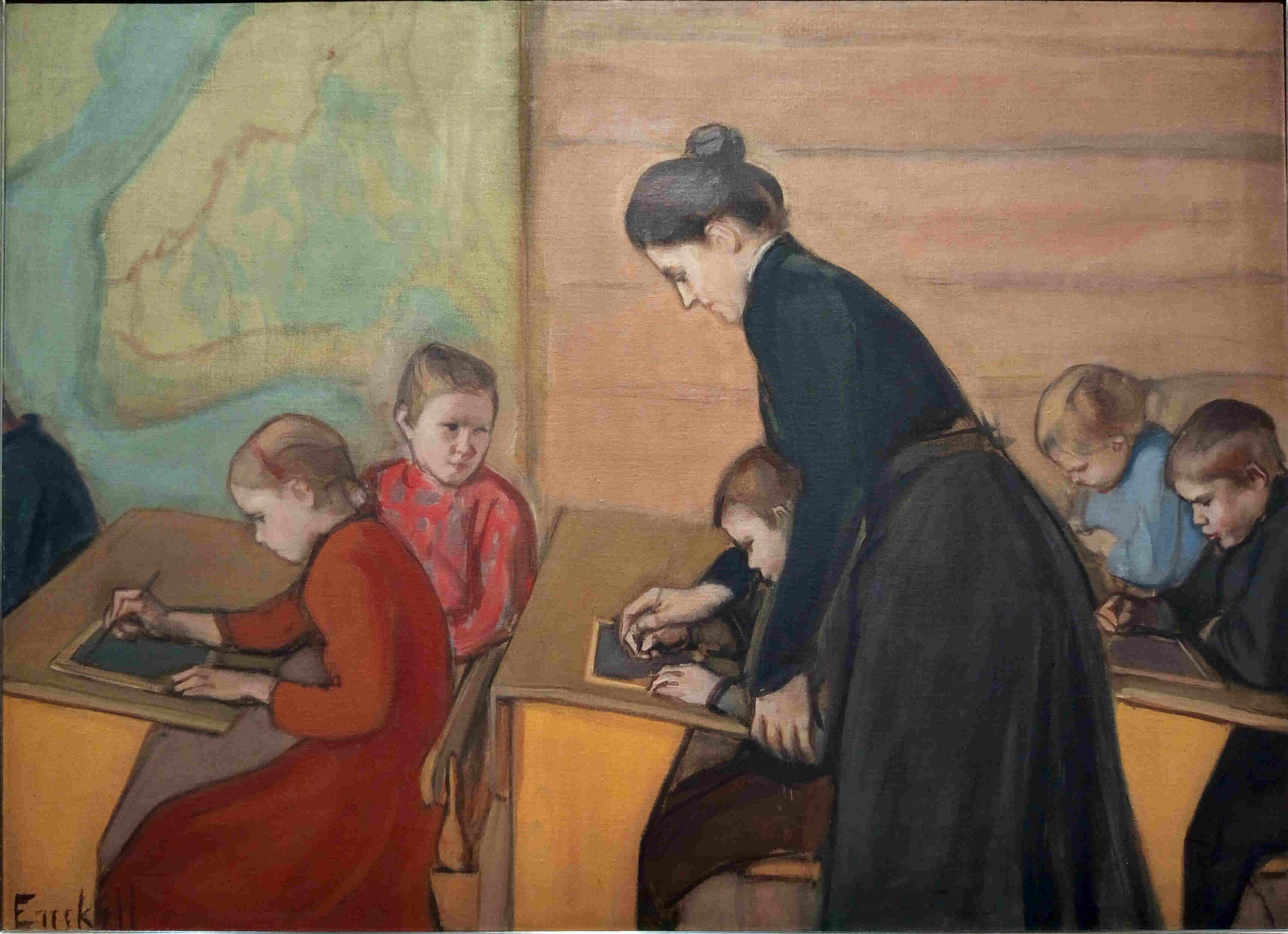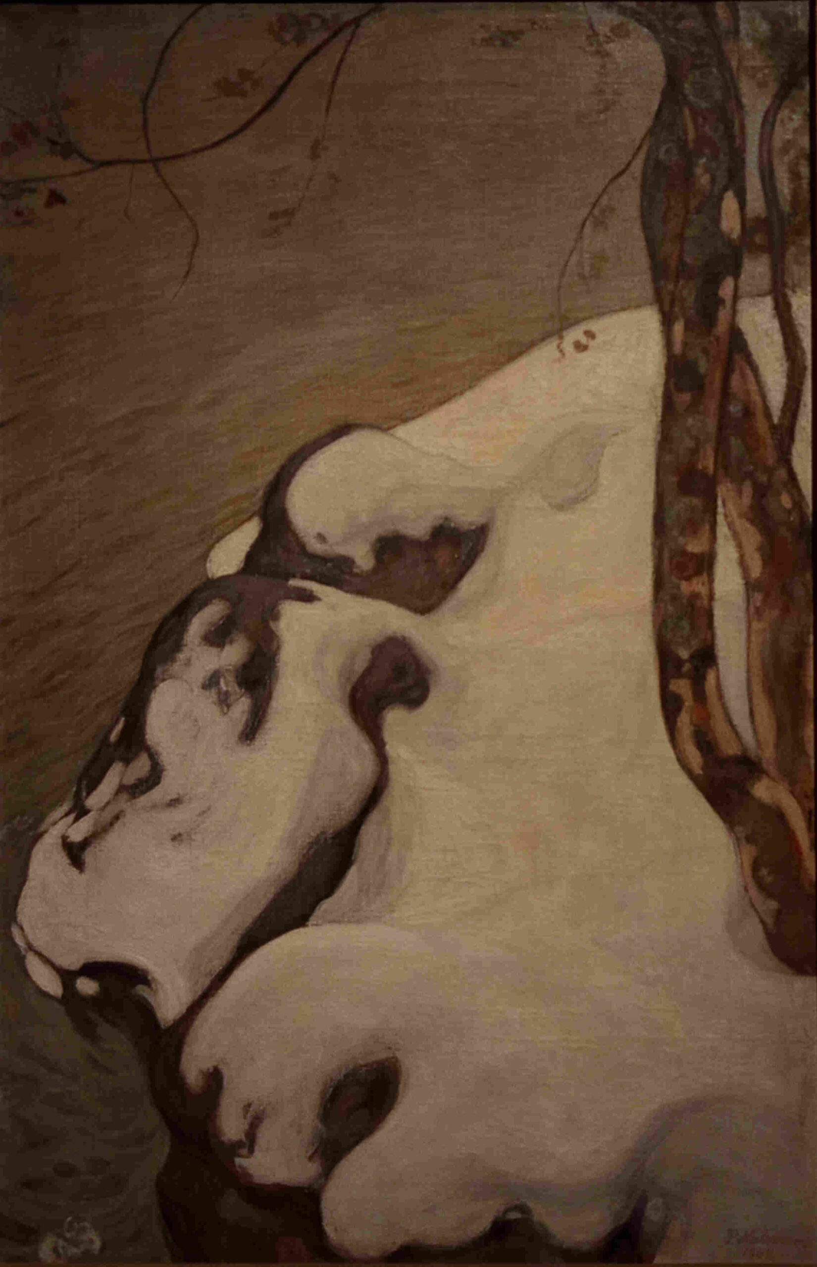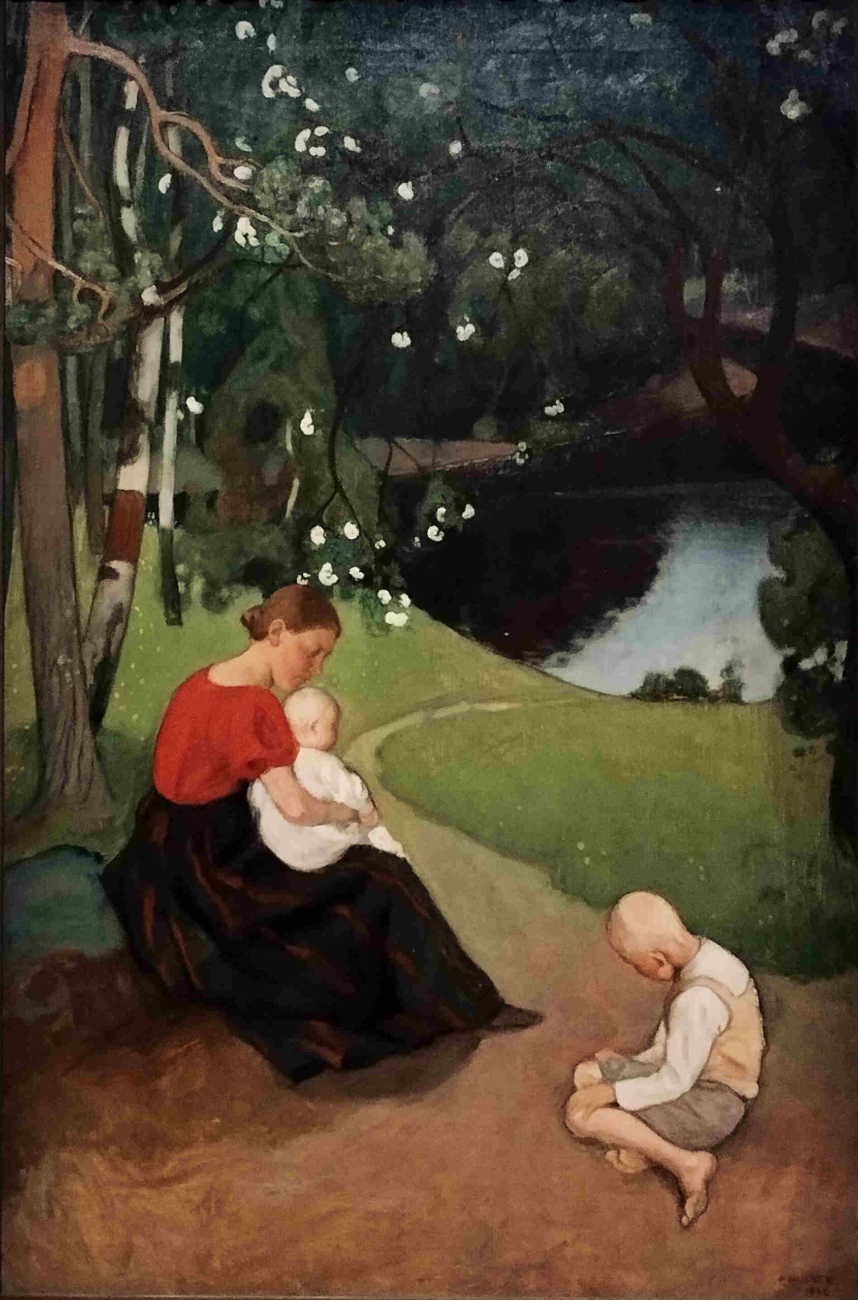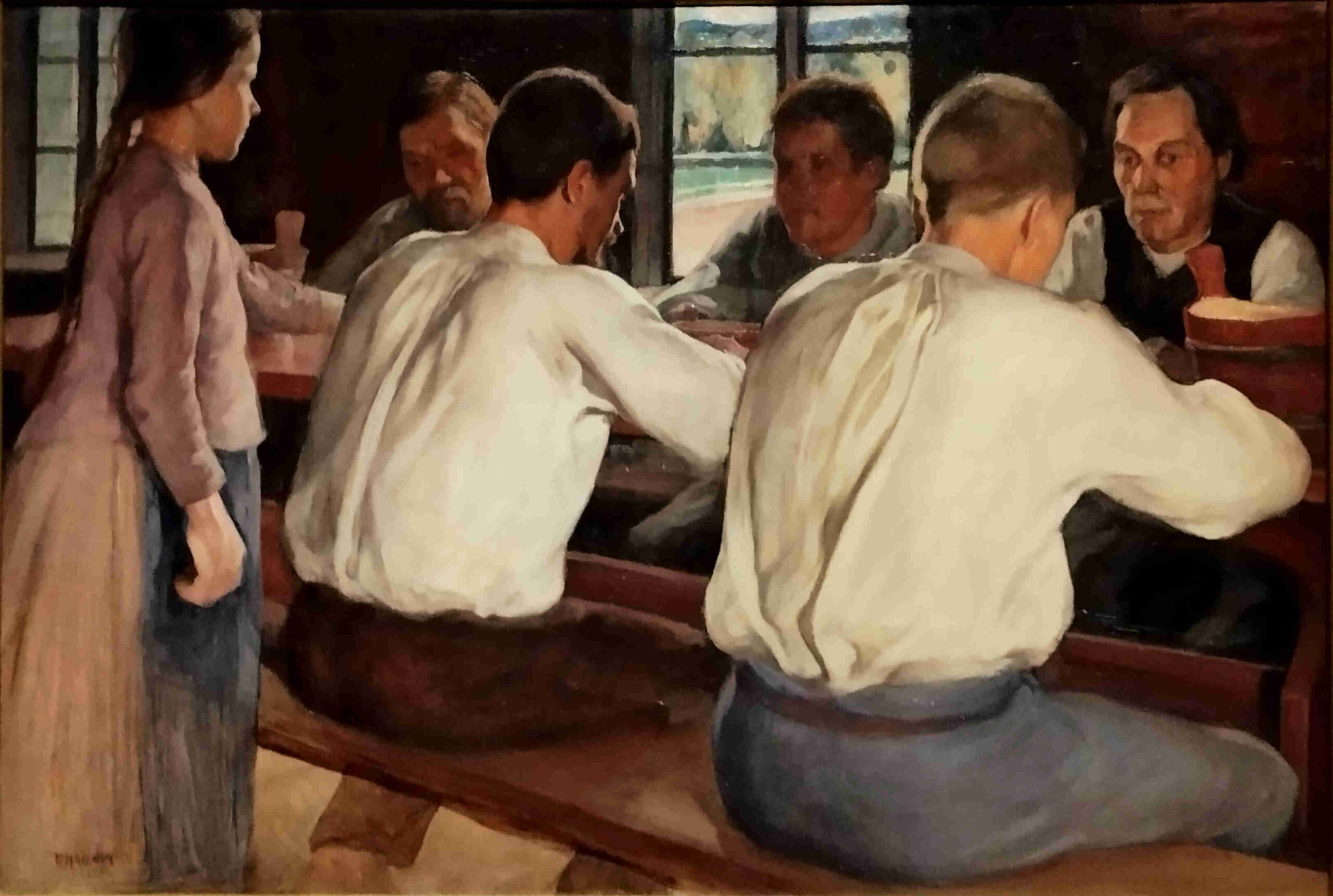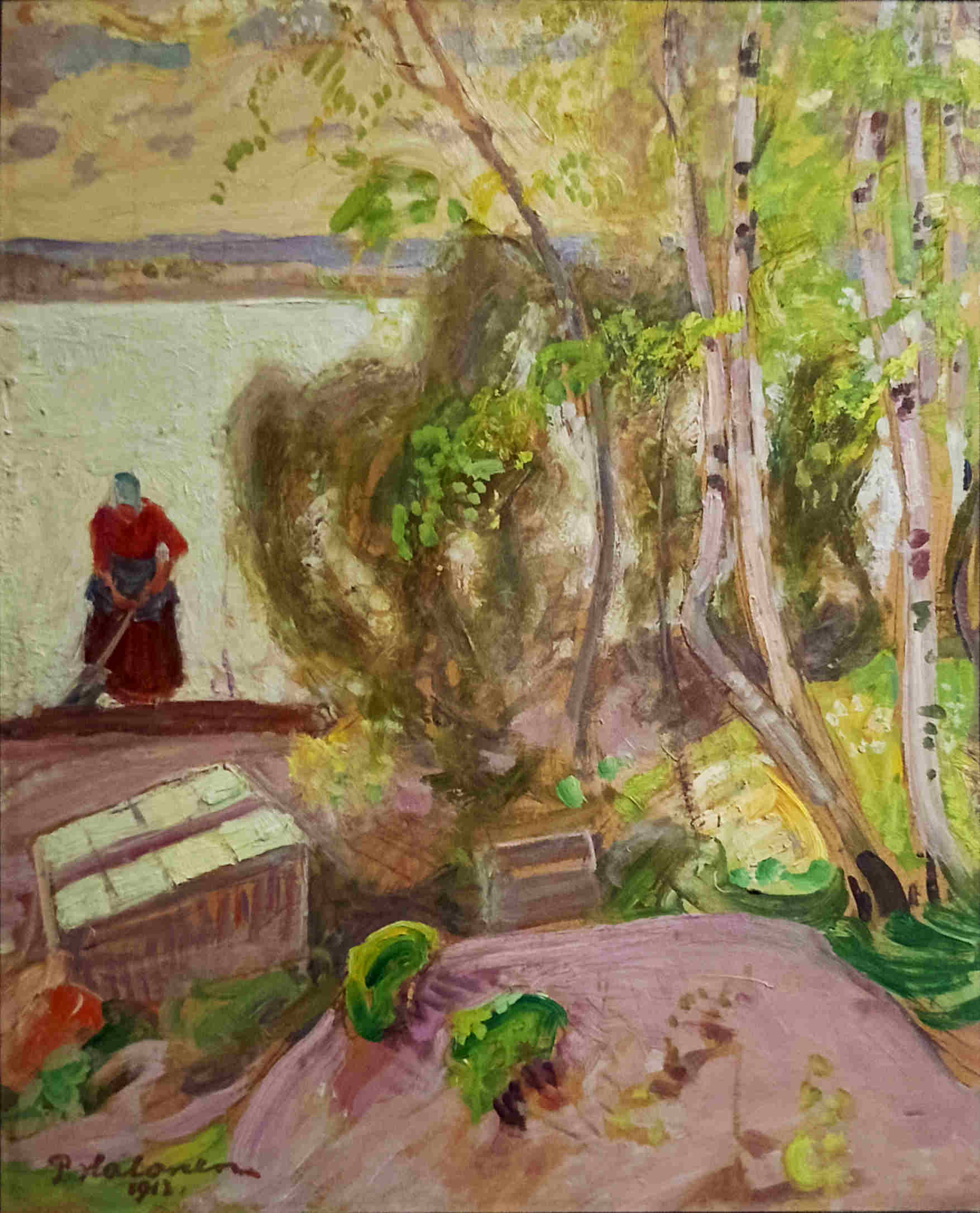 Cependant, l’enseignement le plus profond de Gauguin dépasse largement la seule sphère technique. Sous son influence, Halonen exalte la vie rustique et nourrit sa réflexion théosophique.