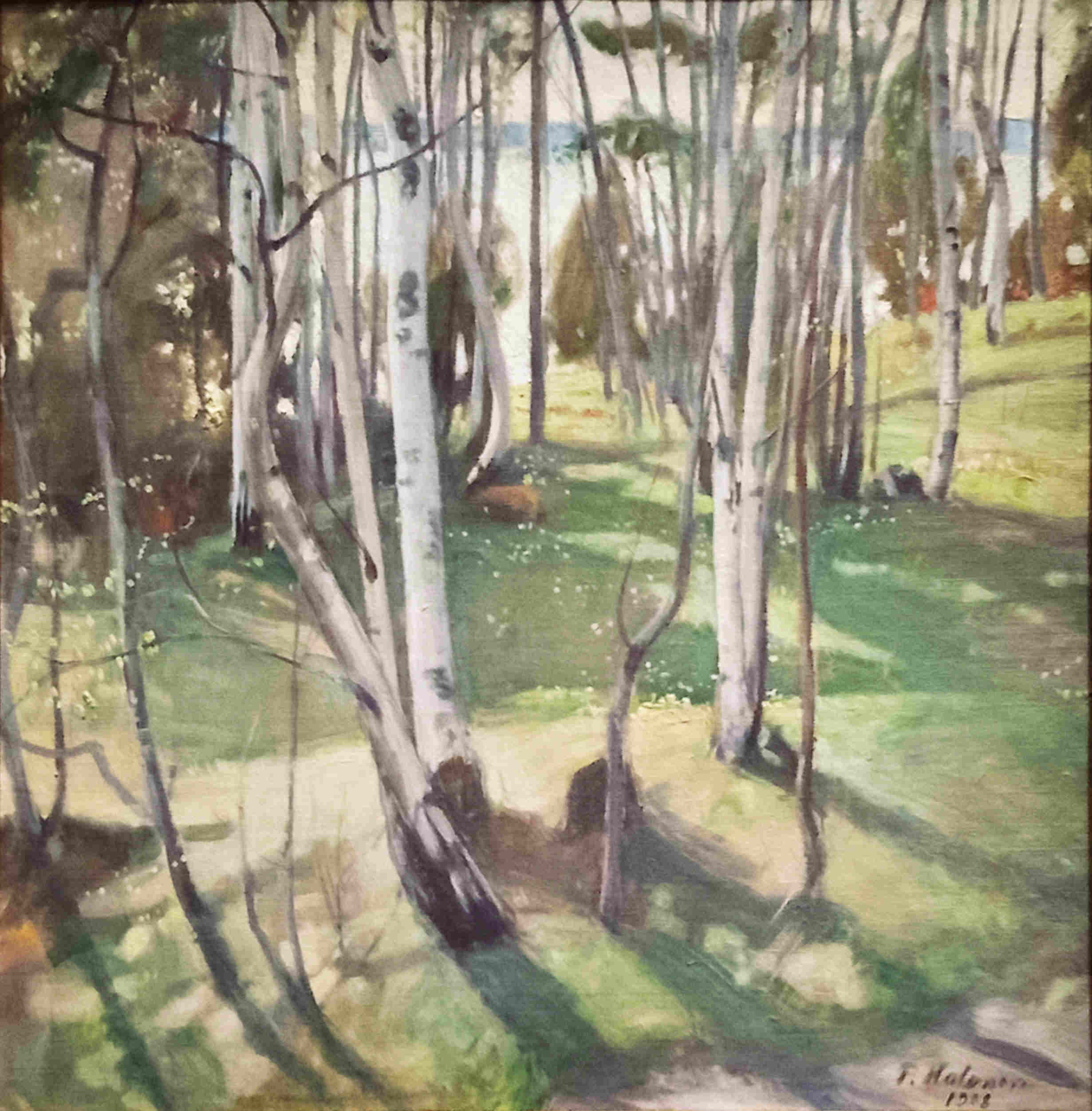Né en 1865 au cœur des campagnes du centre-est de la Finlande, Pekka Halonen grandit dans un environnement rural où la peinture et la musique sont des passions partagées au sein de sa famille. Il fait ses premiers pas artistiques à Helsinki avant de partir pour Paris en 1890 afin d’y approfondir son apprentissage de la peinture.