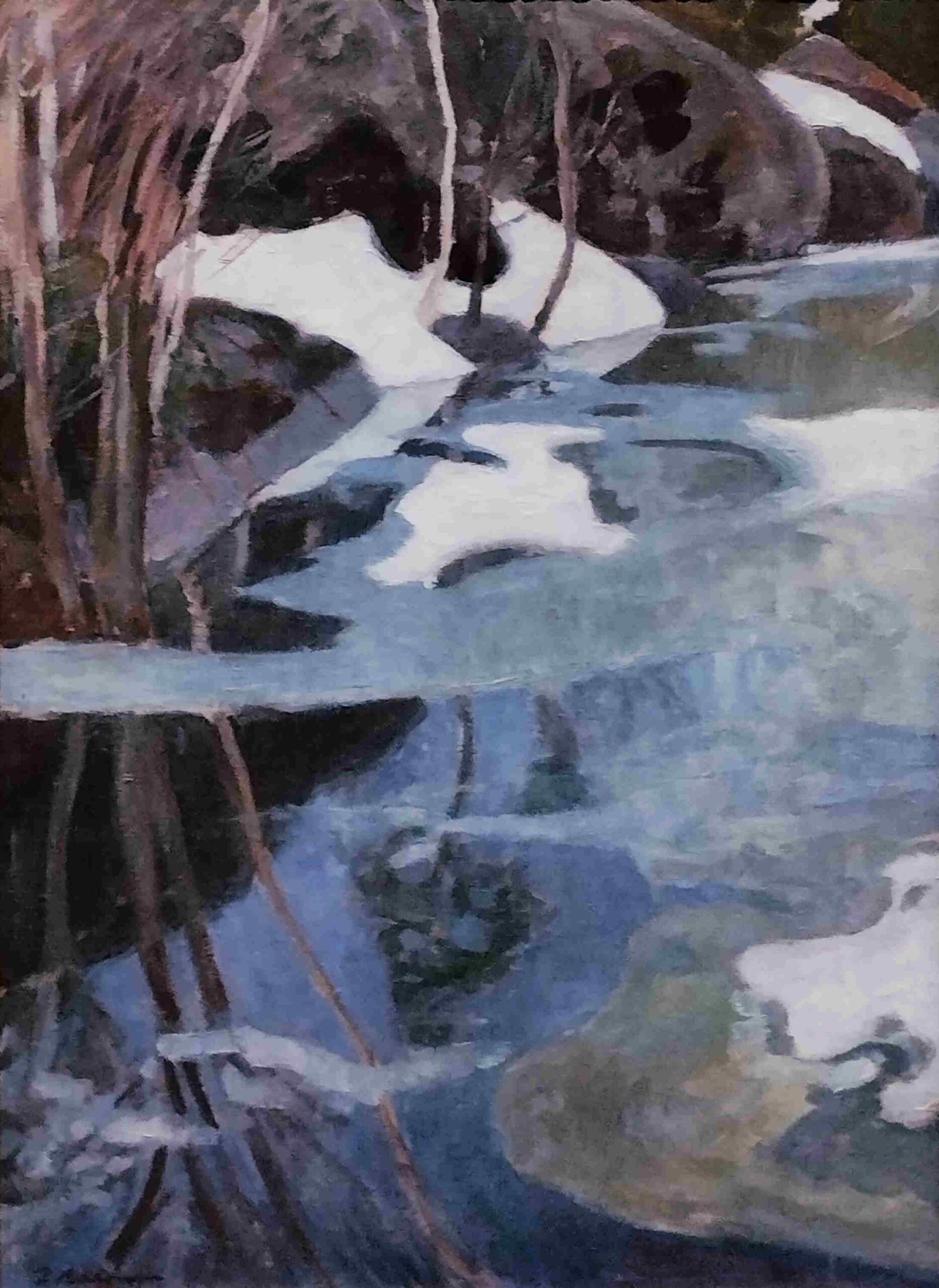 Aucune monotonie dans ces toiles. La neige, loin d’être un simple motif, devient pour l’artiste un territoire d’exploration inépuisable, un laboratoire pictural qu’il pousse jusqu’aux lisières de l’abstraction.