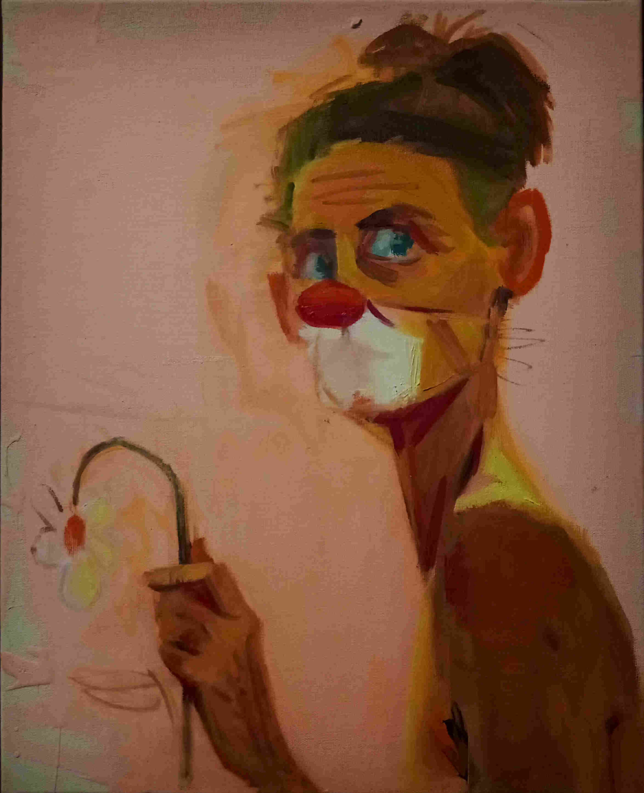 Autoportrait clown/fleur, Nina Childress, huile et acrylique sur toile, 2020, MAM de Paris