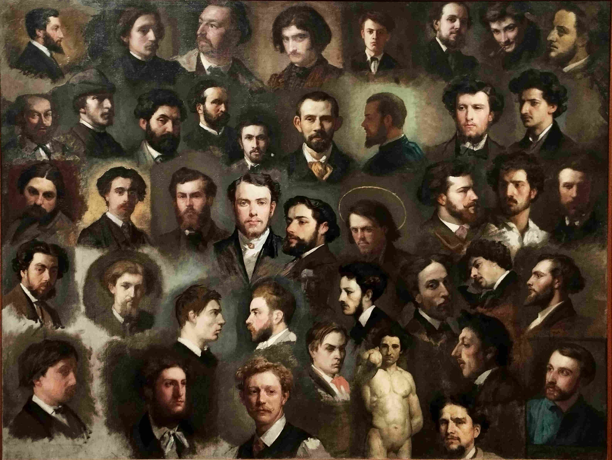 Quarante-trois Portrait des élèves de l’atelier Charles Gleyre, artistes divers, huile sur toile, entre 1856 et 1868