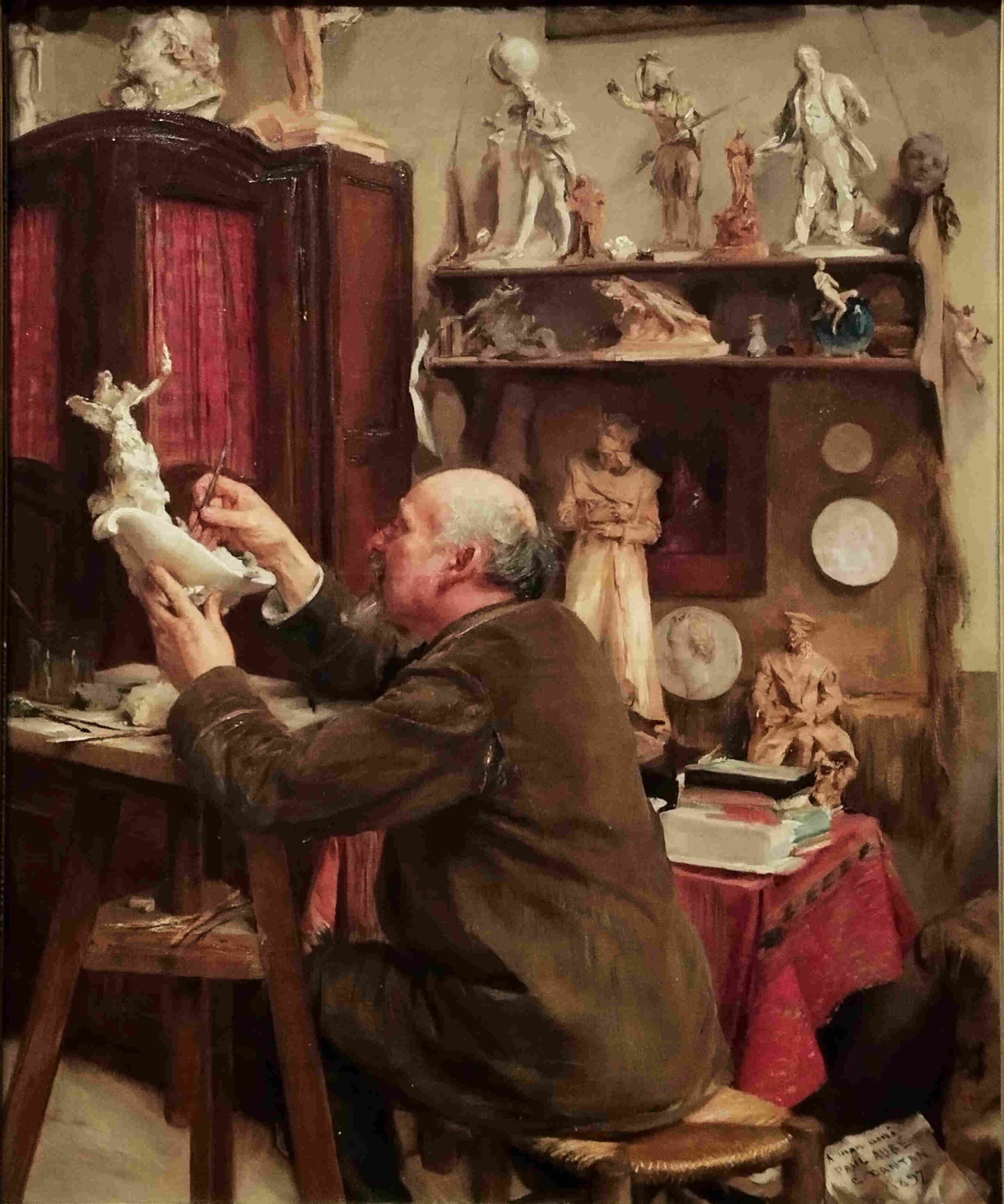 Portrait du statuaire Paul Aubé travaillant dans son atelier, Edouard Dantan, huile sur toile, 1897
