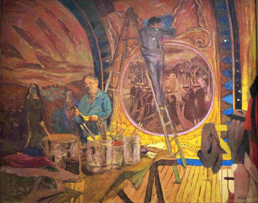 Ici, l’artiste n’est plus seulement un sujet isolé, mais un être inscrit dans un réseau d’affinités, de complicités et parfois de rivalités fécondes. Certaines œuvres mettent en scène des groupes d’artistes réunis dans un même espace, presque comme des manifestes visuels. Ces compositions évoquent des cercles intellectuels ou des avant-gardes, où l’identité individuelle se fond dans une identité partagée.