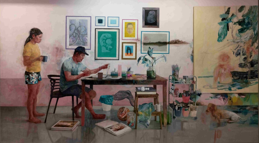 Gan Tee Sheng révèle avec A quiet afternoon son style et ses compositions qui mettent souvent en scène à la manière des maitres anciens des figures humaines dans des espaces intérieurs.