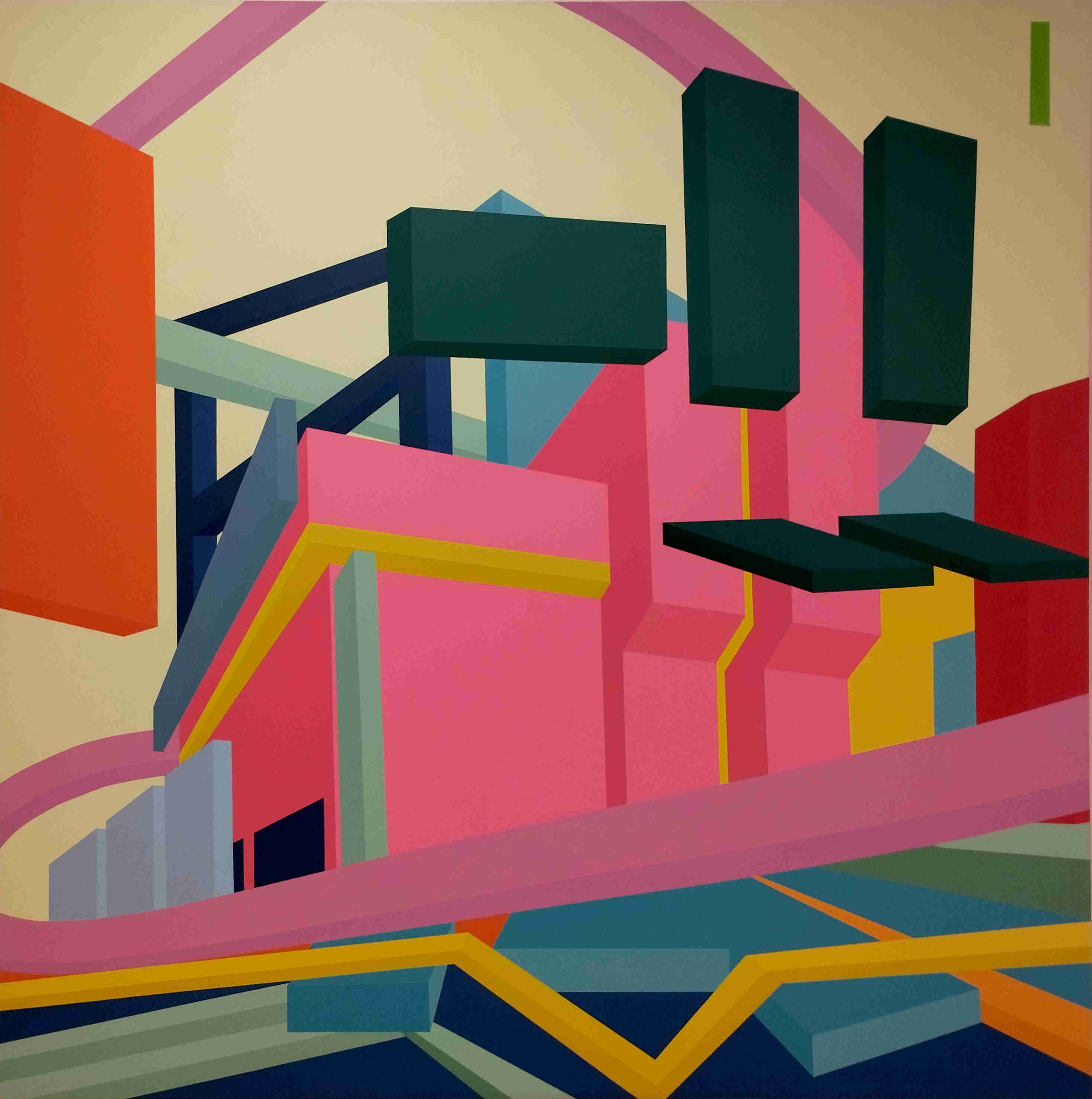 Dans la veine de Kontinum, Izzuddin Basiron inscrit sa création autour de l’abstraction géométrique inspirée de l’urbanisme et de l’architecture.